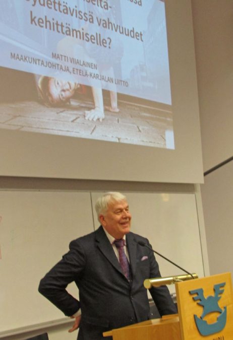 Professori Moision alustuksesta kävi hyvin ilmi se, että väestö ja taloudellinen toiminta ovat entistä keskittyneempiä. Matti Viialainen toi keskusteluun näkökulmaa alueelta, joka on kärsinyt tämän keskittymisen seurauksista. ’Onko Itä-Suomi pelastettavissa näivettymiseltä – mistä löydettävissä vahvuudet kehittämiselle?’ Viialaisen esitys oli oivallinen esimerkki siitä, että näillä taantuviksi luokitelluilla alueilla ei ole annettu periksi, vaan monipuolisella aloitteisuudella pyritään kääntämään kehityksen suunta, jos tahtoa siihen löytyy.